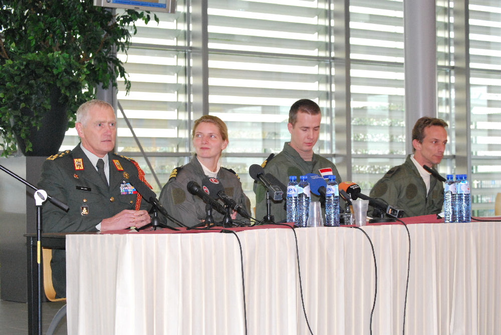 I tre militari hanno potuto quindi non solo riabbracciare la loro famiglia ma anche scambiare qualche parola con i giornalisti. Ivonne mi è sembrata la più tranquilla. Piccola, minuta, con lunghi capelli biondi raccolti in una coda; il viso segnato da piccole macchie rosse. Stanca e pallida ma felice. Più provati sono apparsi i due compagni, Martin e Bas. Martin guardava spesso per terra e appariva teso, quasi impaurito. Infatti è stata lei la prima a prendere la parola, dopo la precisazione del Generale Van Uhm, di non fare domande inerenti la motivazione e la dinamica dell’arresto, perchè ancora in fase di inchiesta.