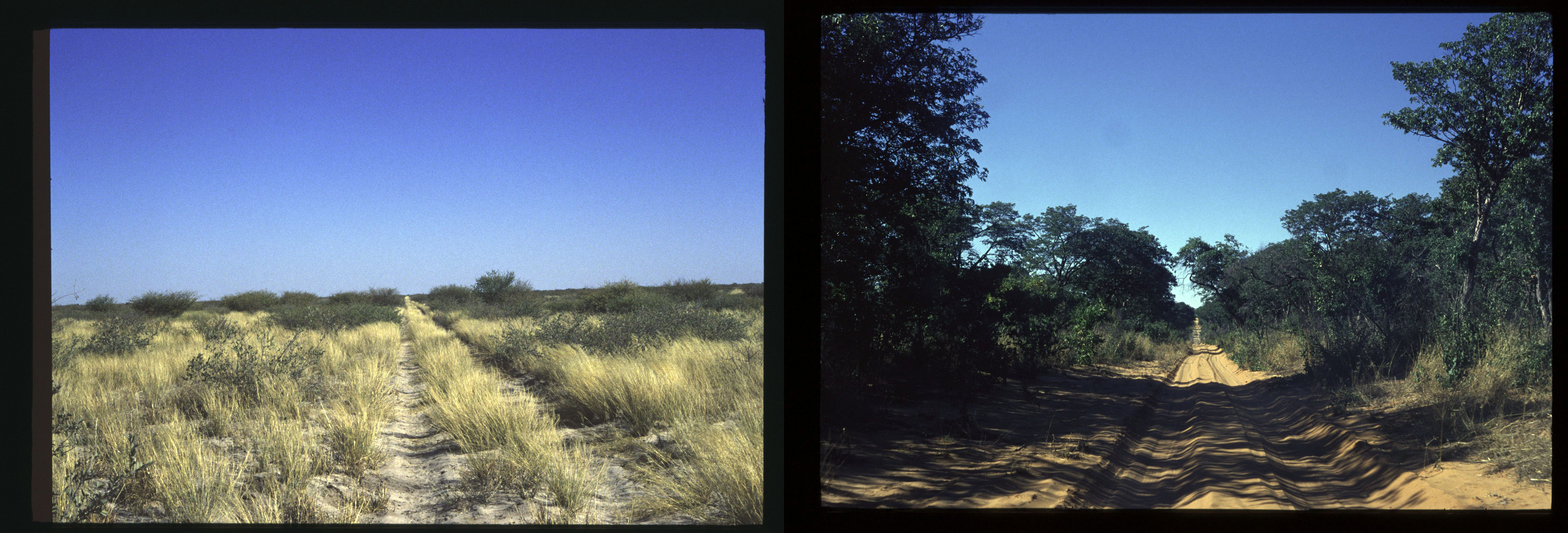 Certo, perché abbiamo attraversato il Central Kalahari Game Reserve (vasto più o meno come la Danimarca) da sud a nord percorrendo anche piste in disuso guidati dalle carte geografiche e dal mio navigatore satellitare, uno dei primi esemplari, capace solo di indicare le coordinate da riportare sulla carta.