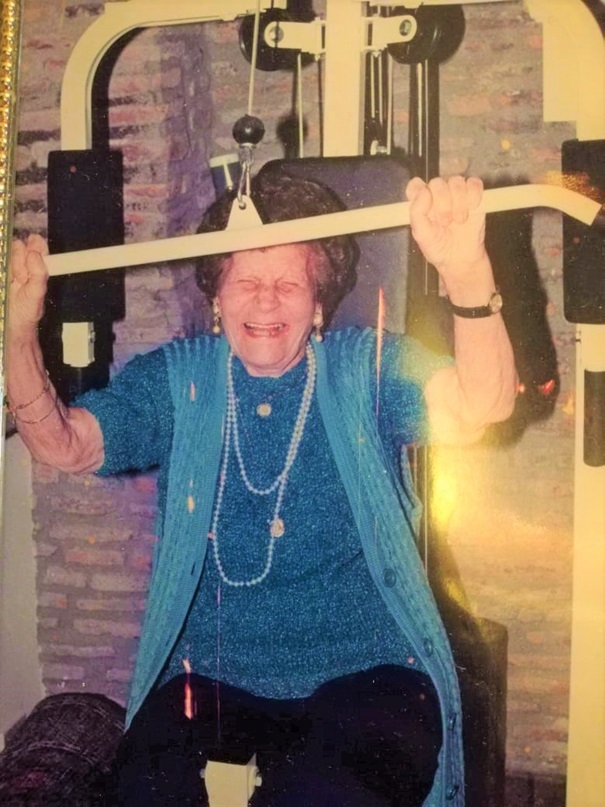 Nonna Gina mentre fa sport. Ne parlo al presente, perchè coloro che lasciano un’eredità d’amore sono sempre vivi nel cuore e nel pensiero di chi l’ha raccolta! Viva i nonni capaci di tanta allegria ed ottimismo! Viva i nonni sempre!