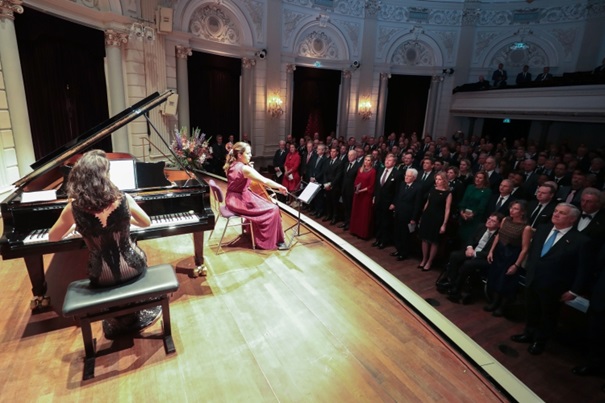 10 novembre 2022. Beatrice e Ludovica Rana talentuose musiciste pugliesi, di fama mondiale, che hanno tenuto un bellissimo concerto per pianoforte e violoncello al Concertgebouw di Amsterdam in onore dei reali d’Olanda, Willem Alexander e Máxima, offerto dal nostro Presidente della Repubblica Sergio Mattarella e dall’ambasciata d’Italia nei Paesi Bassi, rappresentata dall’Ambasciatore in carica S.E. Giorgio Novello. Foto di Rosanna Piturru.