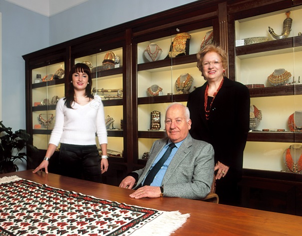 Dietro di loro la preziosa collezione di coralli, di cui si parla nel volume Lungo le vie del corallo. Luminosa come i loro sorrisi.