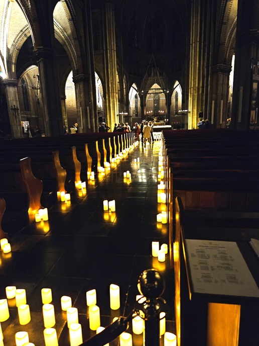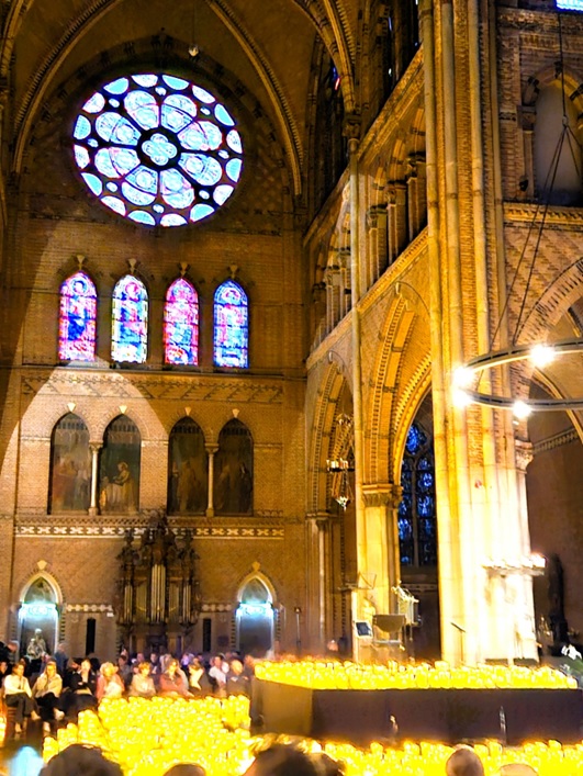 Eindhoven (Paesi Bassi), nella Chiesa cattolica Sint Catharina, in attesa che inizi lo speciale concerto delle candele, “Candlelight concert”, ispirato alle musiche dei Queen e degli Abba, del quartetto Agathe Ensemble. Foto di Maria Cristina Giongo