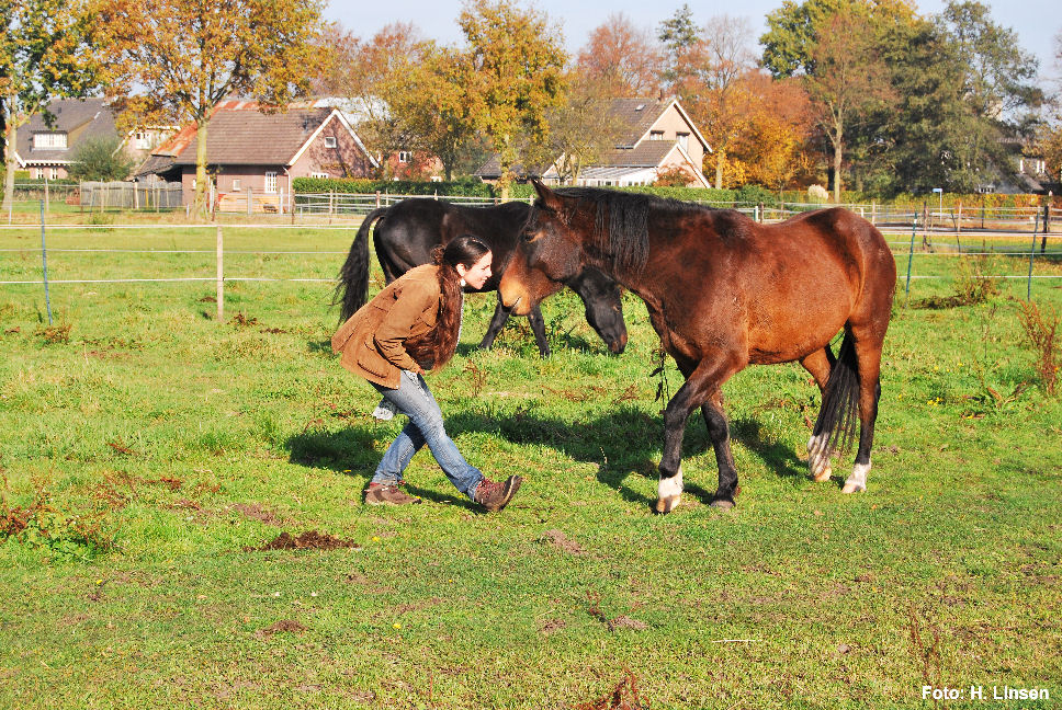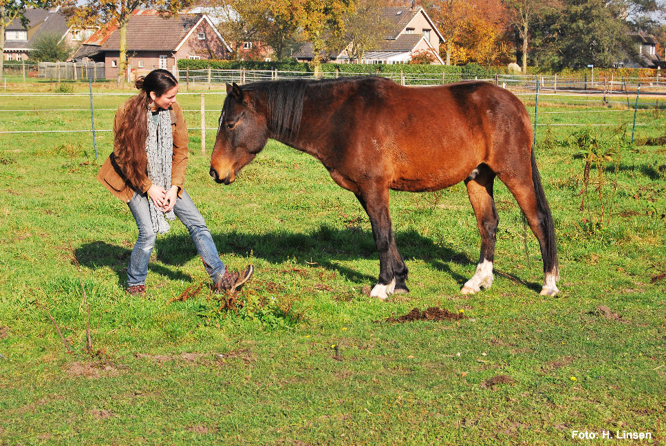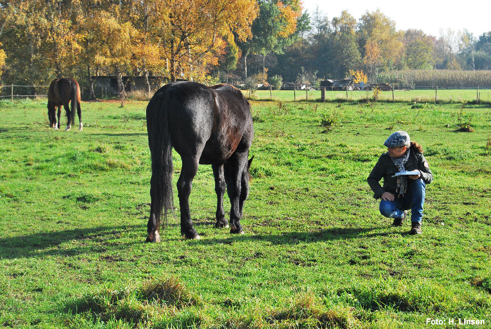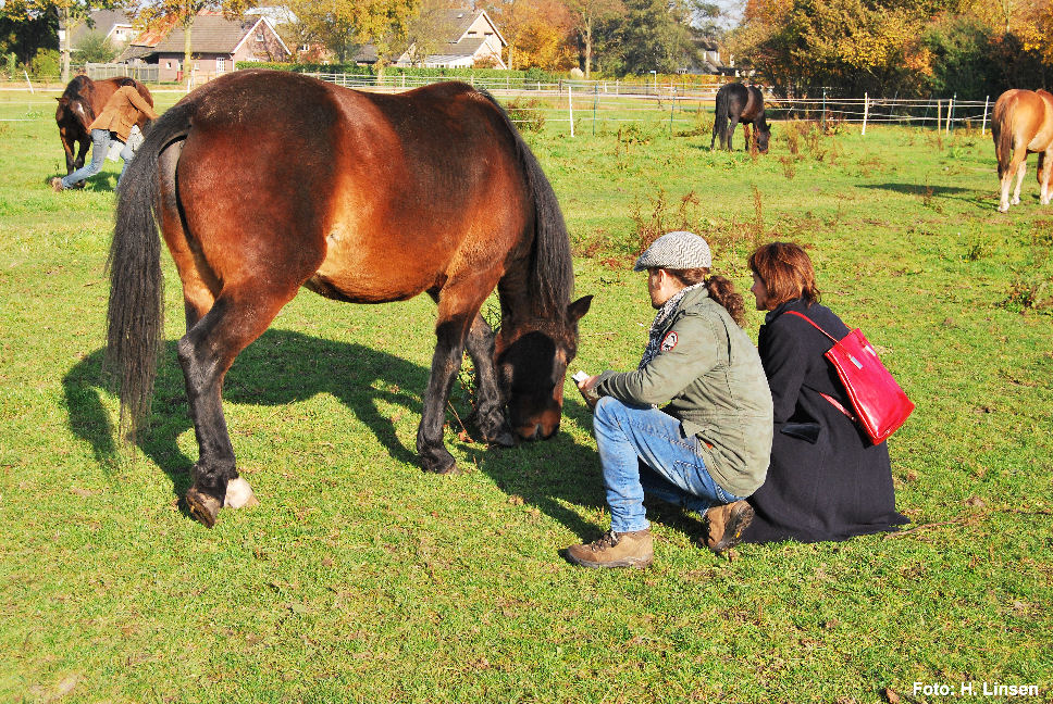 Non c’è cosa migliore, per spiegare un concetto… che viverlo anche in pratica, sperimentandolo di persona. Le rispondo quindi a questa domanda invitandola a fare lei stessa un’esperienza diretta su quanto ho appena detto…. con i cavalli che vivono qui. Prenda il suo blocco degli appunti. Andiamo insieme da loro. E continuiamo l’intervista nel loro campo. Sono cavalli che vivono insieme. Sono un gruppo familiare e sono cresciuti senza subire alcuna forma di addestramento.