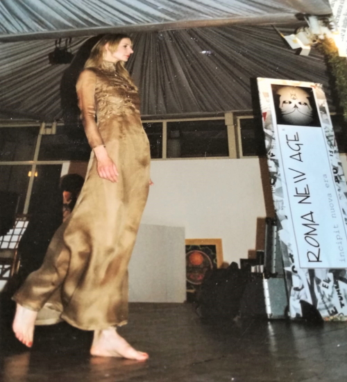 Una bella immagine di Maristella mentre sfila per Roma New Age, oggi il tema Eco è molto diffuso, ma questa tematica per lei ha avuto un ruolo di rilievo già 20 anni fa.