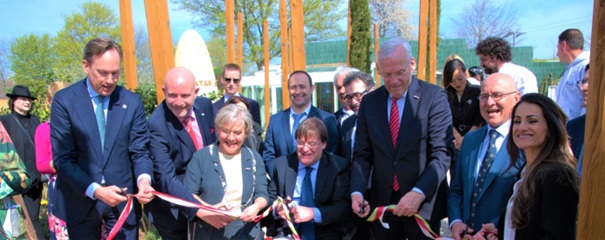Ospiti di riguardo, ministri, ex ministri, fra cui Jorritsma-Lebbink, accanto al sindaco di Almere, ora Commissario generale di Floriade Expo 2022, oltre a organizzatori, manager, segretari generali e della casa reale: tutti intorno al nostro Ambasciatore italiano all’Aja, per la cerimonia di inaugurazione del nostro padiglione.