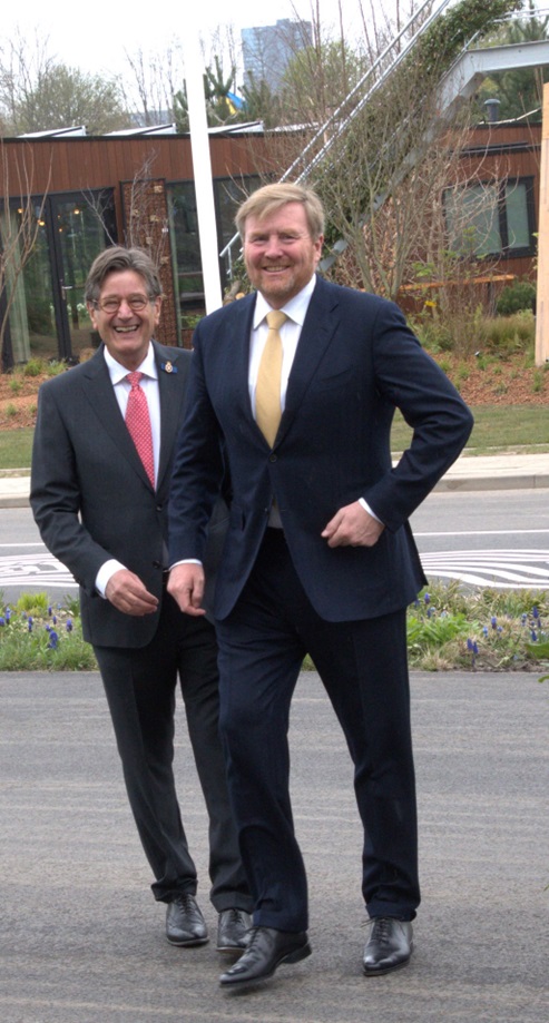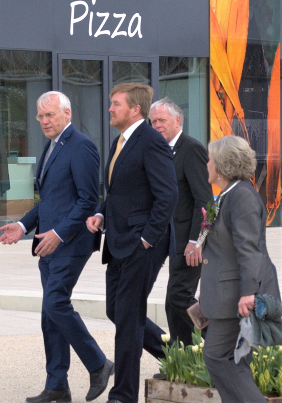 Il re del regno dei Paesi Bassi Willem Alexander all’apertura di Floriade 2022 ad Almere, accanto a lui il sindaco della città, Ank Bijleveld-Schouten. Foto Maria Cristina Giongo