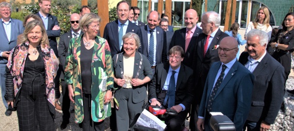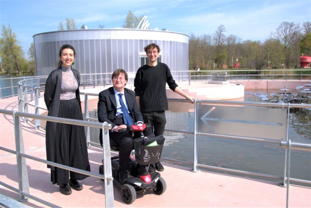 Almere, 14 aprile 2022, Il nostro Ambasciatore Giorgio Novello, con gli architetti Giovanni Bellotti ed Alessandra Covini, dello Studio Ossidiana, i quali hanno progettato il Museum M. uno delle opere più ammirate di Floriade.
