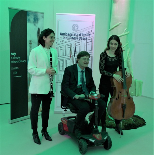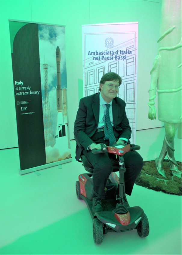 L’apertura del padiglione italiano è avvenuta alla presenza di autorità olandesi, della direttrice dell’Istituto italiano di cultura di Amsterdam, la dottoressa Paola Cordone, altro significativo punto di riferimento per i rapporti culturali fra i due Paesi, di ospiti di riguardo e dei fedeli collaboratori dell’Ambasciata, i quali lavorano indefessamente per rendere più efficienti i servizi a cui accedere per ogni tipo di informazioni.