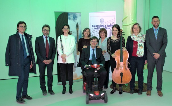 Almere, Floriade; il nostro Ambasciatore Novello nella sala “verde” del Museum M. prima dell’inizio del concerto offerto dall’Ambasciata italiana. Foto Hans Linsen