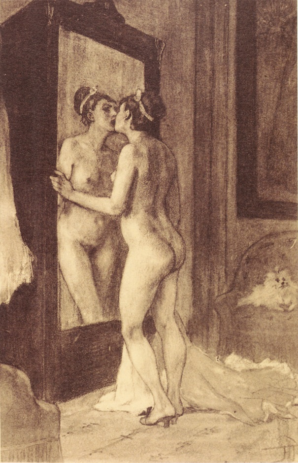 Questo dipinto di Felicien Rops (1833-1898) si chiama Even in love/Narcissism